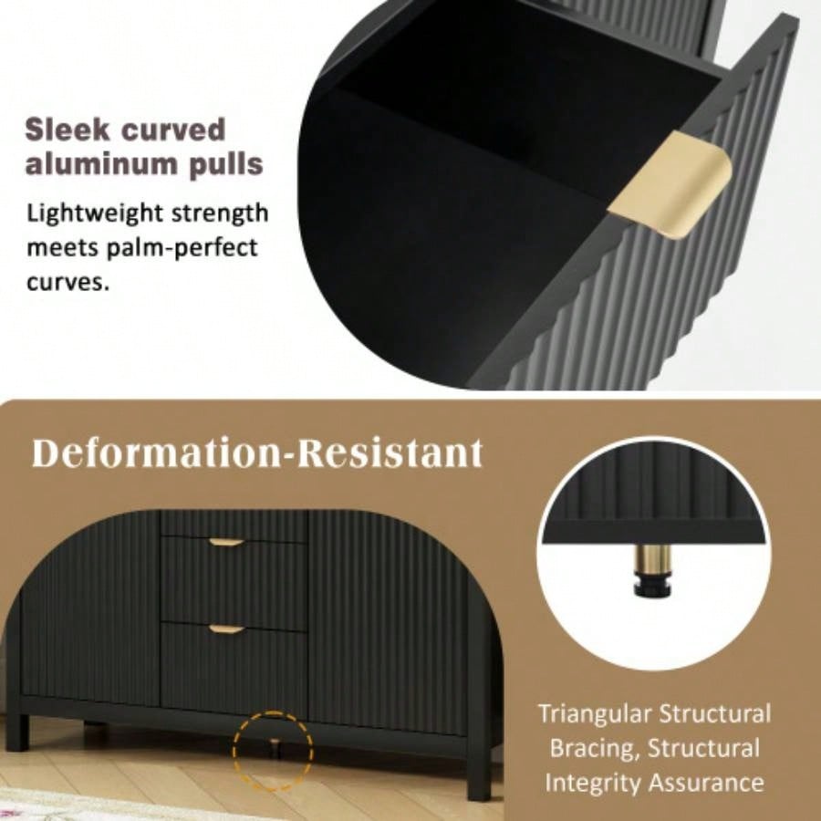 USTYLE Sideboard with Wave Design - 3 Adjustable Shelves, 3 Drawers Soft - Close Doors, Storage Console Table with Metal Handles, Suitable Study, Hallway and Living Room, 3 Colors