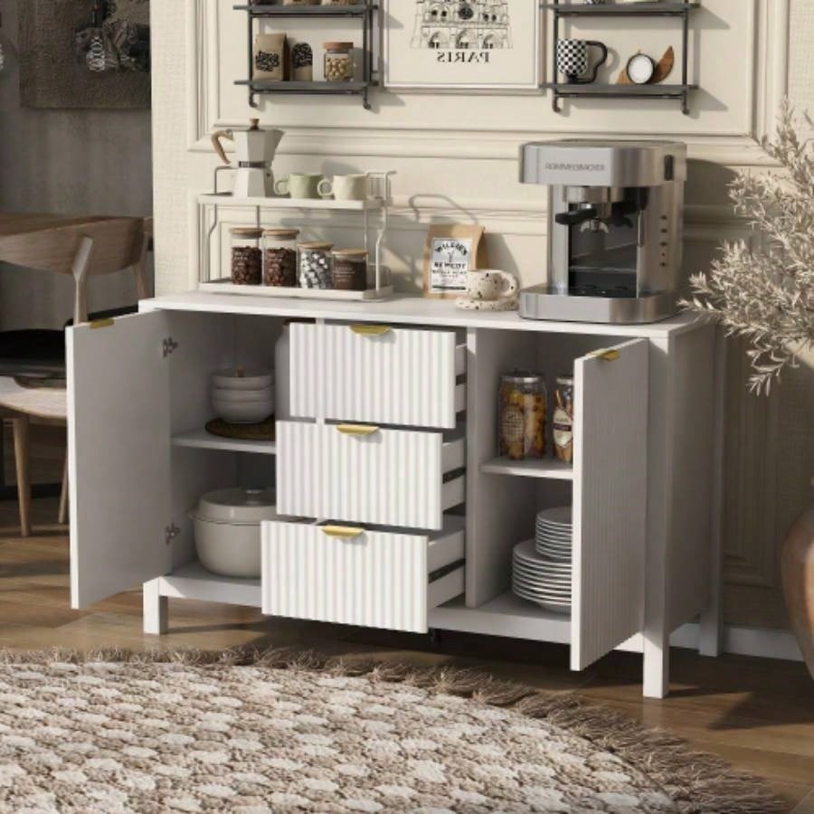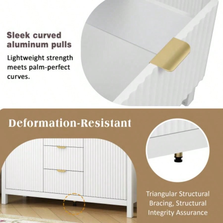 USTYLE Sideboard with Wave Design - 3 Adjustable Shelves, 3 Drawers Soft - Close Doors, Storage Console Table with Metal Handles, Suitable Study, Hallway and Living Room, 3 Colors