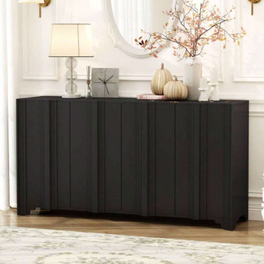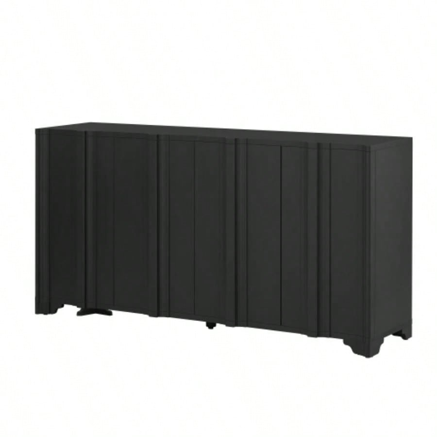USTYLE Sophisticated 4 - Door Sideboard Adorned with Intricate Linear Accents and Luxurious Multi - Layered Pine Veneer Design Elements, Suitable Living Rooms, Entrance and Study Rooms