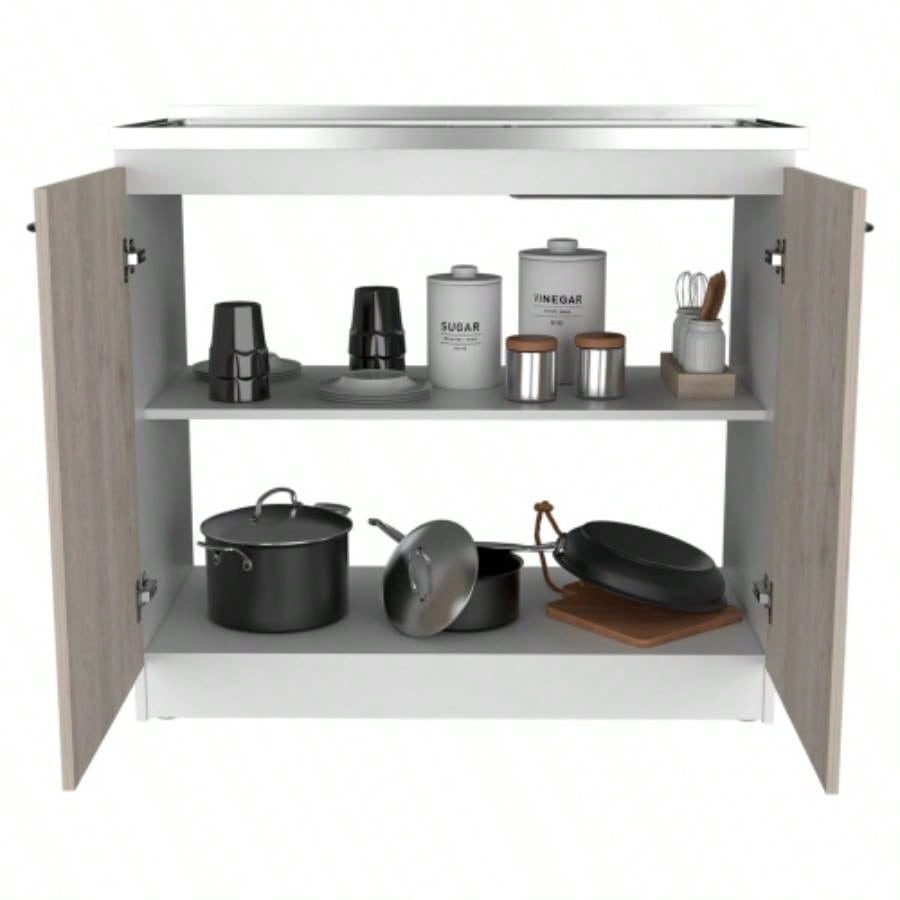 Utility Sink, Double Door Cabinet, Stainless Steel Countertop