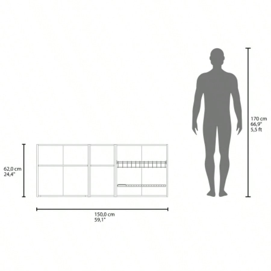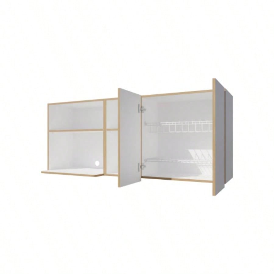 Wall - Mounted Kitchen Cabinet with Microwave Space, Open Shelves, and Double Doors - Natural Oak and White