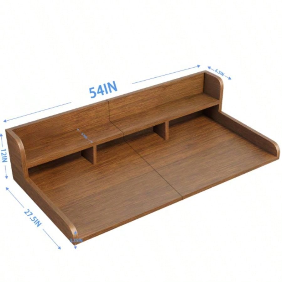 Washer Dryer Countertop with Non - slip Pads, Laundry Wood Shelf Topper with, 54 Widthx 27.5 Depth Double Layer Organizer Washer and Dryer Laundry Hamper Counter Storage OrganizationWALNUT